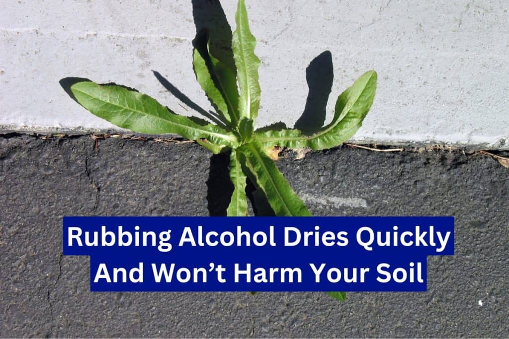 Rubbing alcohol breaks down the waxy surface of weeds known as cuticles. Once cuticles become compromised, the weed quickly loses water and starts to wither.